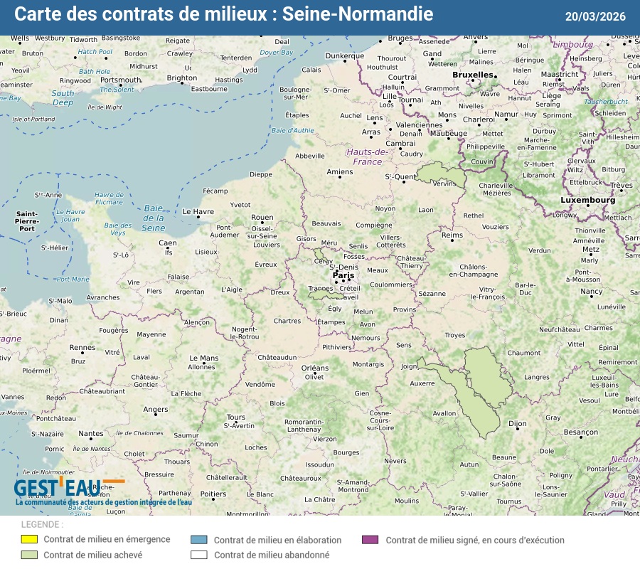Carte et liste des 5 contrats de milieux du bassin Seine-Normandie
