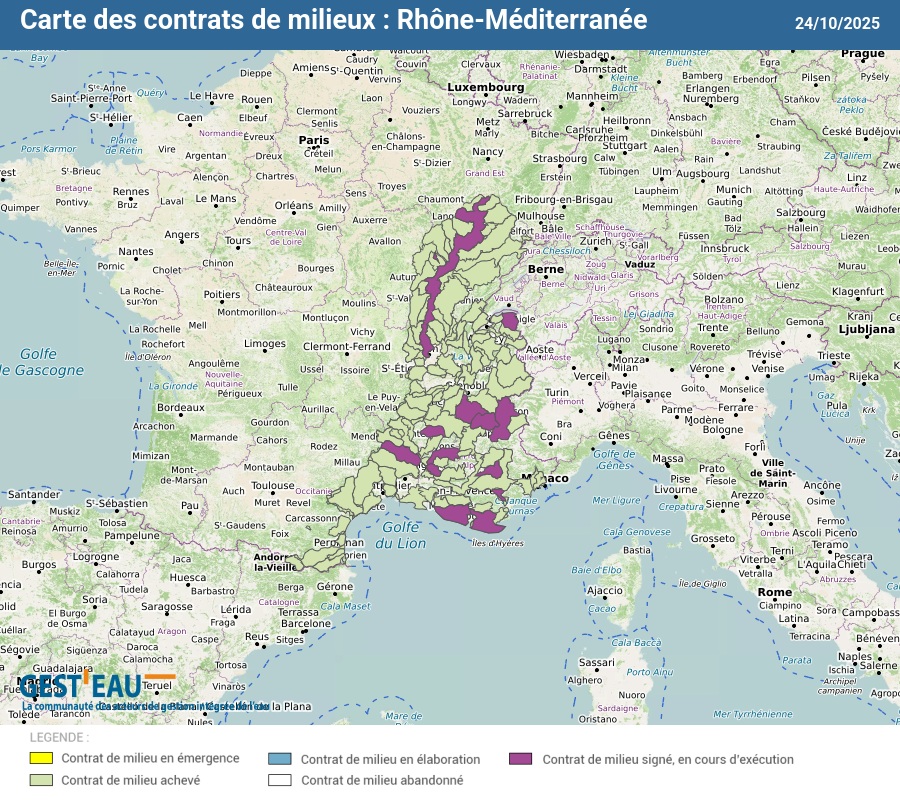 Carte et liste des 181 contrats de milieux du bassin Rhône-Méditerranée