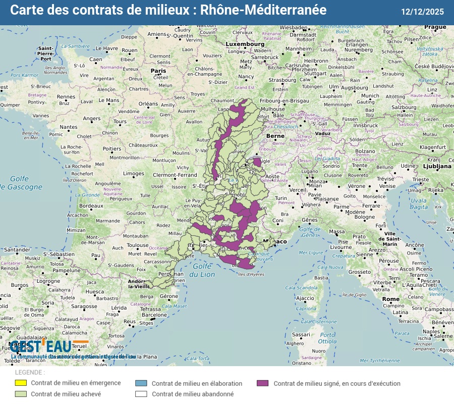 Carte et liste des 182 contrats de milieux du bassin Rhône-Méditerranée