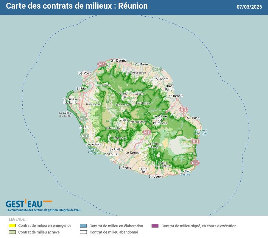 Carte et liste des 0 contrats de milieux du bassin Réunion