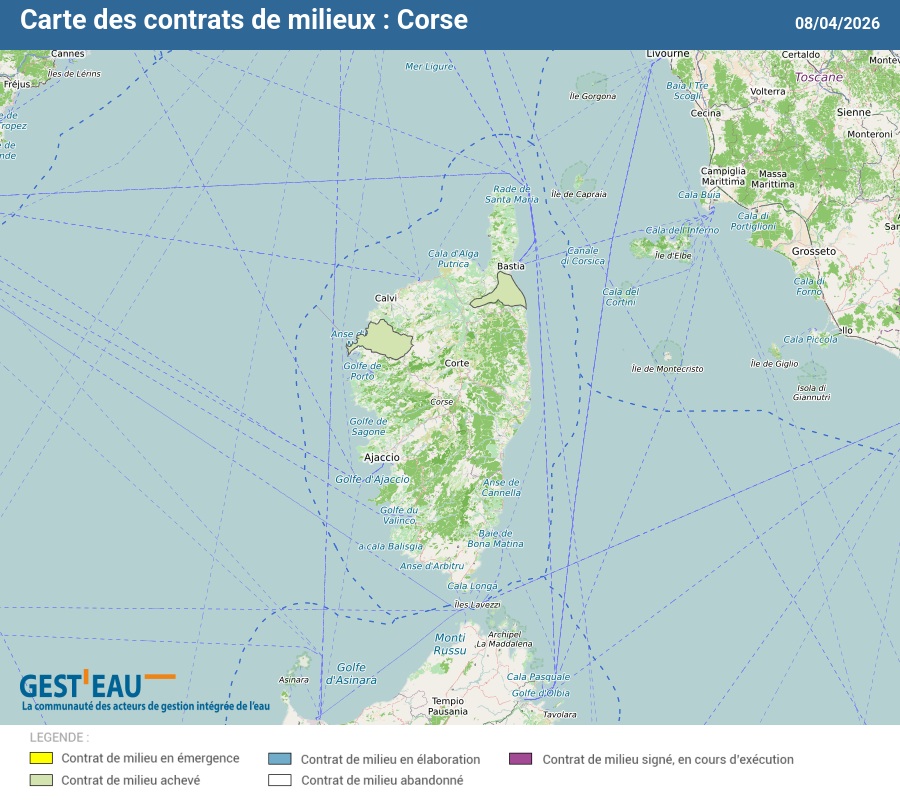Carte et liste des 2 contrats de milieux du bassin Corse
