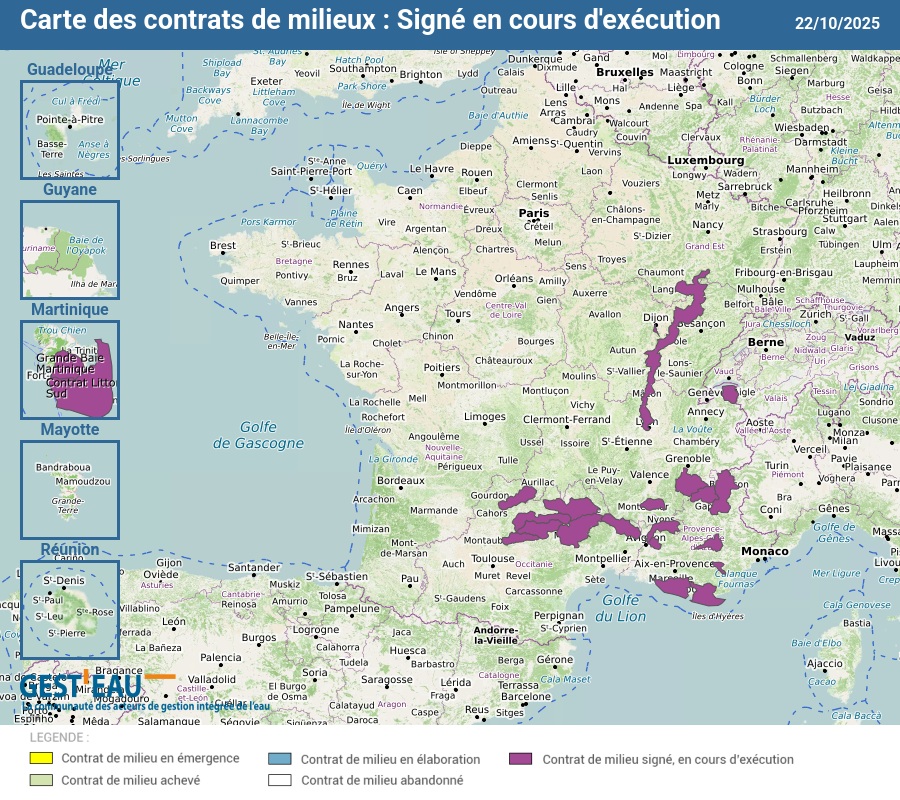 Carte de situation des contrats de milieux : Signé en cours d'exécution