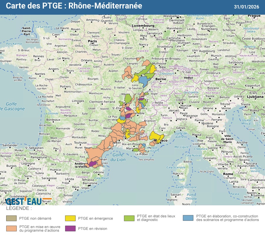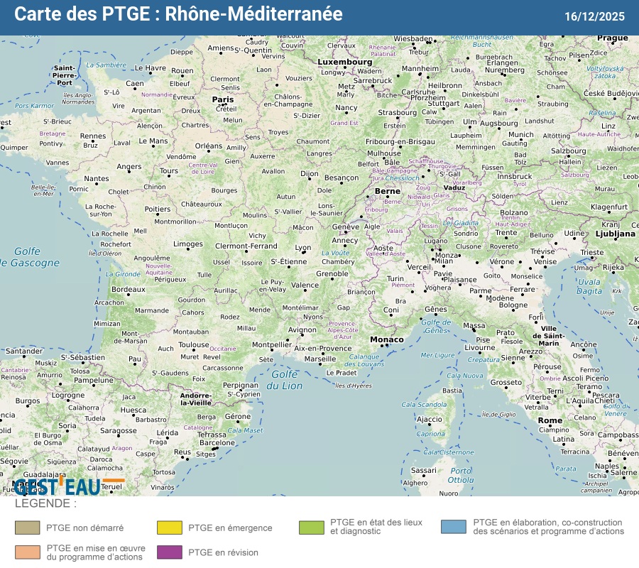 Carte de situation des PTGE : Rhône-Méditerranée
