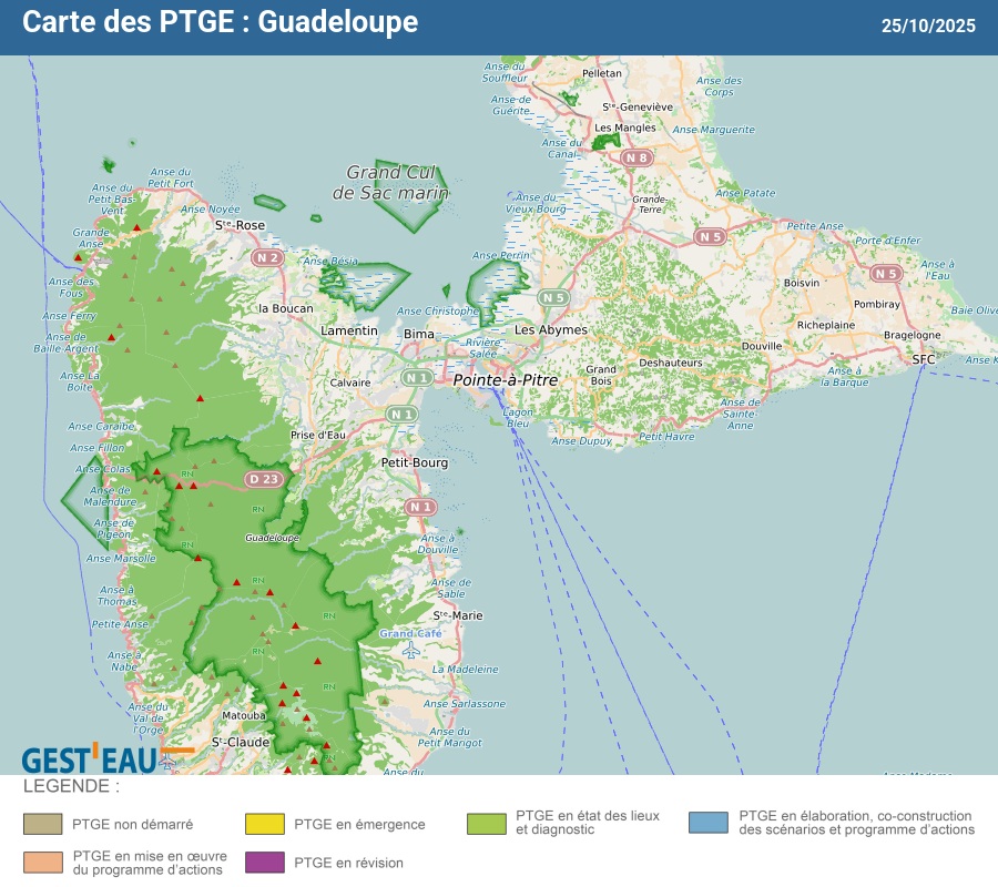 Carte de situation des PTGE : Guadeloupe