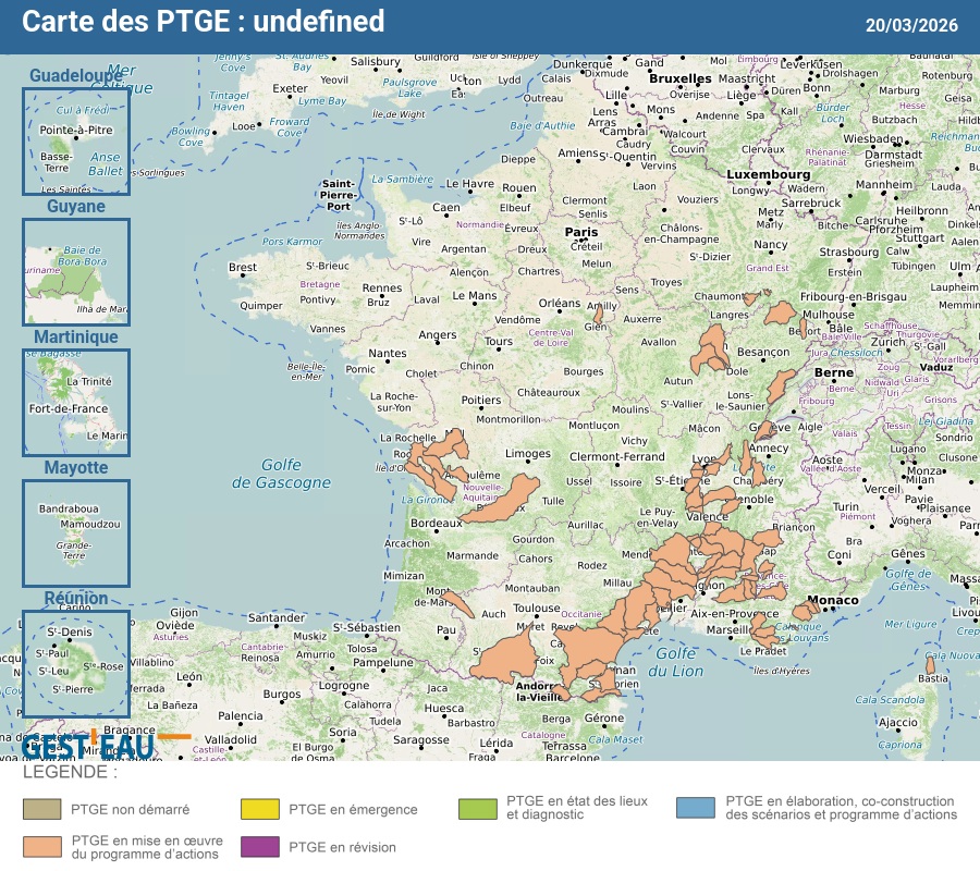 Carte de situation des PTGE : Mise en œuvre du programme d’actions