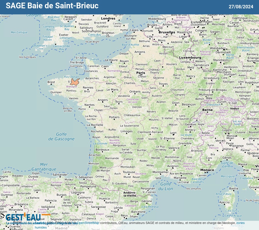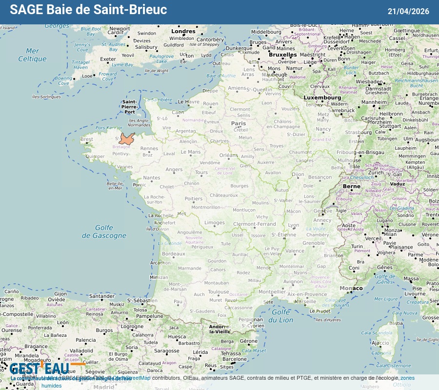 Le périmètre du SAGE de la baie de Saint-Brieuc correspond à un territoire d’une superficie de 1110 km² formé principalement des bassins versants de l’Ic, le Gouët, l’Urne, le Gouessant, la Flora et l’Islet. Situé en totalité sur le périmètre des Côtes d’Armor, le périmètre du SAGE intègre tout ou partie de 68 communes.