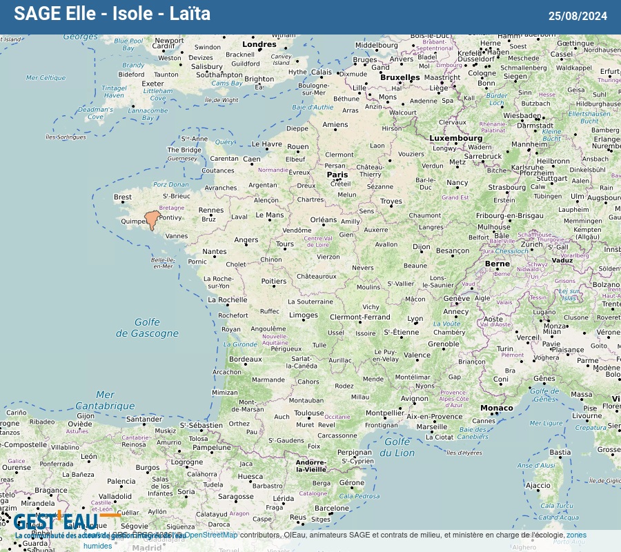 Le bassin versant hydrographique est de 917 km² et se compose de la Laïta et de ses deux affluents, l'Ellé et l'Isole.