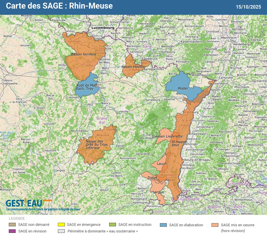 Carte et liste des 11 SAGE du bassin Rhin-Meuse