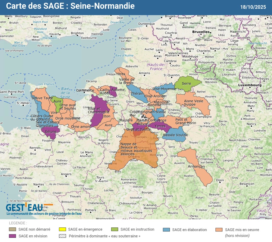 Carte et liste des 42 SAGE du bassin Seine-Normandie