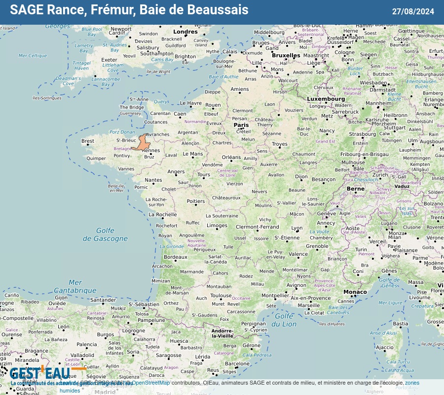 Le 4 juillet 1996, répondant à un souci de la préservation et de la gestion concertée de la ressource en eau, le Schéma Directeur d'Aménagement et de Gestion des Eaux (S.D.A.G.E.) Loire-Bretagne fixe un S.A.G.E. prioritaire sur le bassin versant de la Rance. Le 3 novembre 1998, le périmètre S.A.G.E. RANCE FREMUR BAIE DE BEAUSSAIS est fixé par arrêté préfectoral.