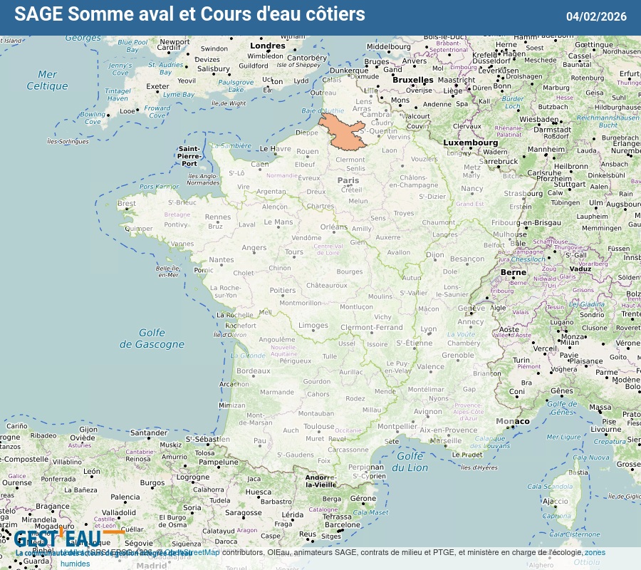 Le SAGE Somme aval et Cours d’eau côtiers s'étend de la commune de Daours à la mer et couvre une superficie de 4530 km².
